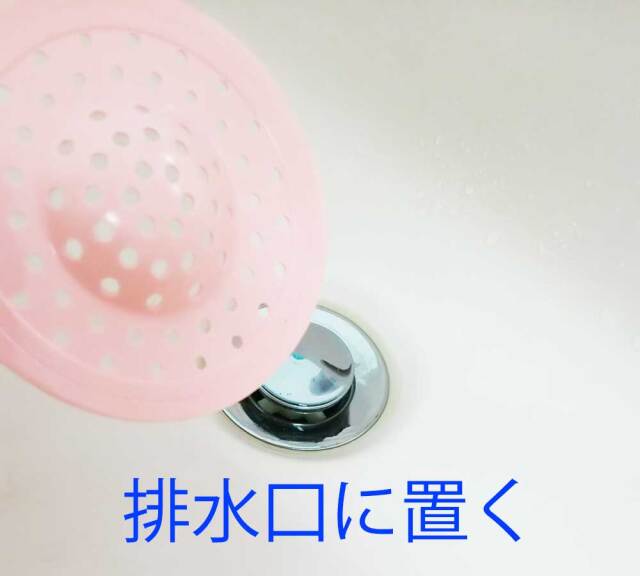 ■「コンタクトレンズ流出防止マット」を排水口にピッタリとフタをするように置いて下さい。