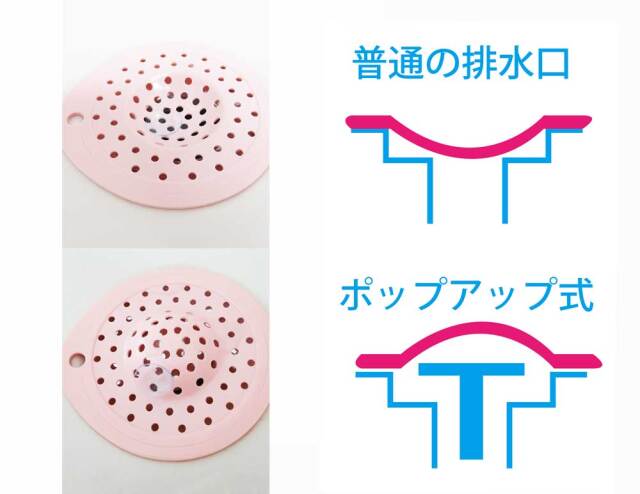 普通の排水口にも、ポップアップ式排水口にも、どちらにも裏返してお使いいただけます。